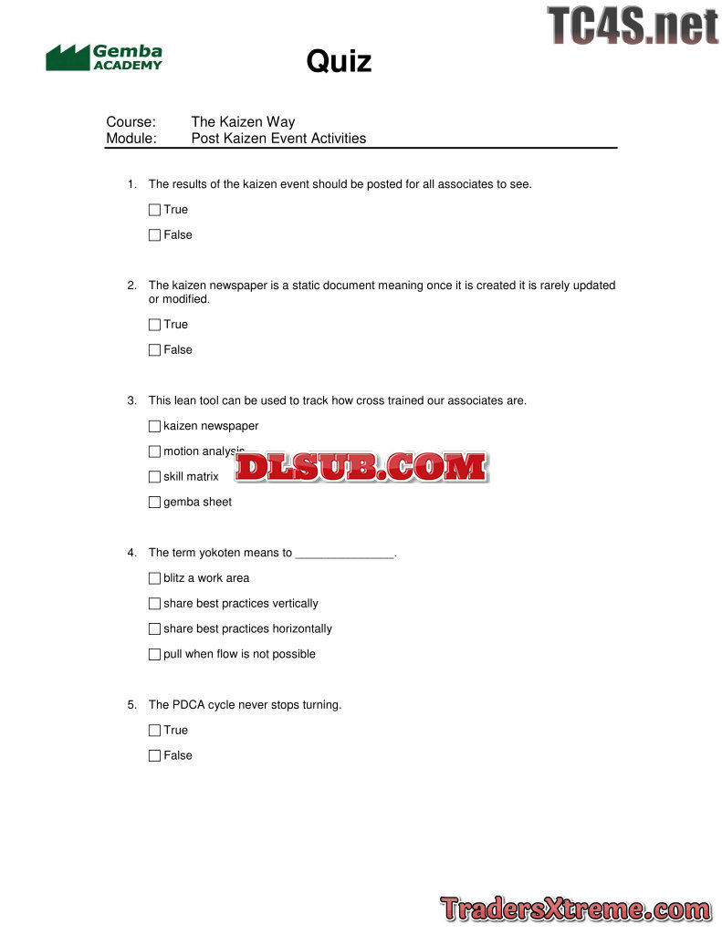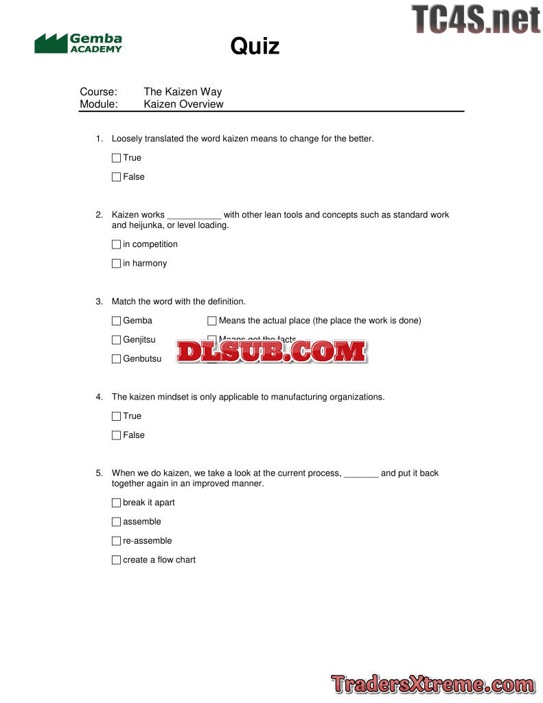 Quiz Answers Kaizen - JPG Image File