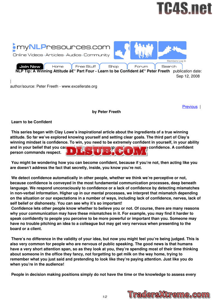 A Winning Attitude Part Four Learn To Be Confident Peter Freeth - JPG Image File