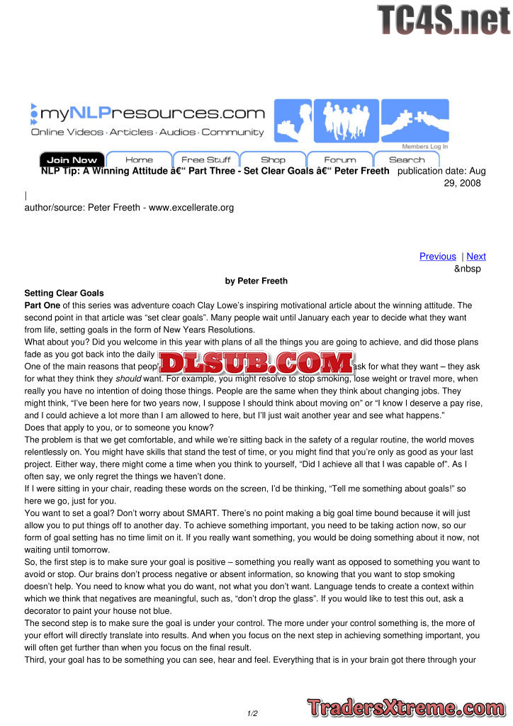 A Winning Attitude Part Three Set Clear Goals Peter Freeth - JPG Image File