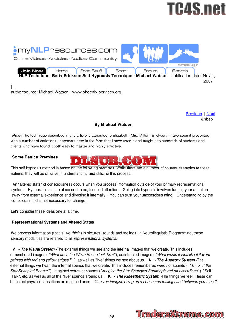 Betty Erickson Self Hypnosis Technique Michael Watson - JPG Image File